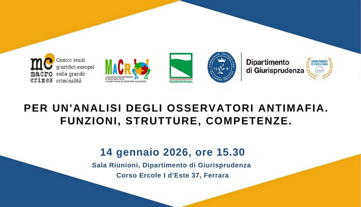 L’incontro avrà luogo mercoledì 14 gennaio 2026 alle ore 15.30, presso la Sala Riunioni del Dipartimento di Giurisprudenza, Corso Ercole I d’Este 37, Ferrara, e si svolgerà a porte chiuse, riservato esclusivamente ai partecipanti indicati nel programma.